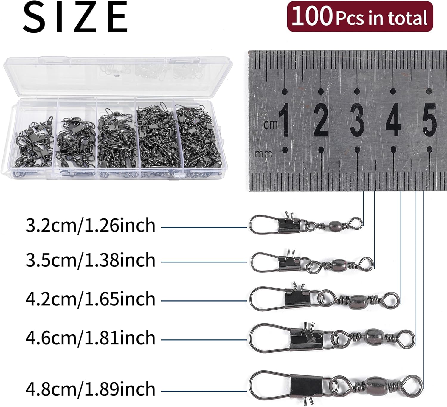 100Pcs Fishing Swivels, 5 Sizes Barrel Snap Swivel Fishing Tackle for Quick Linking of Lures and Lines