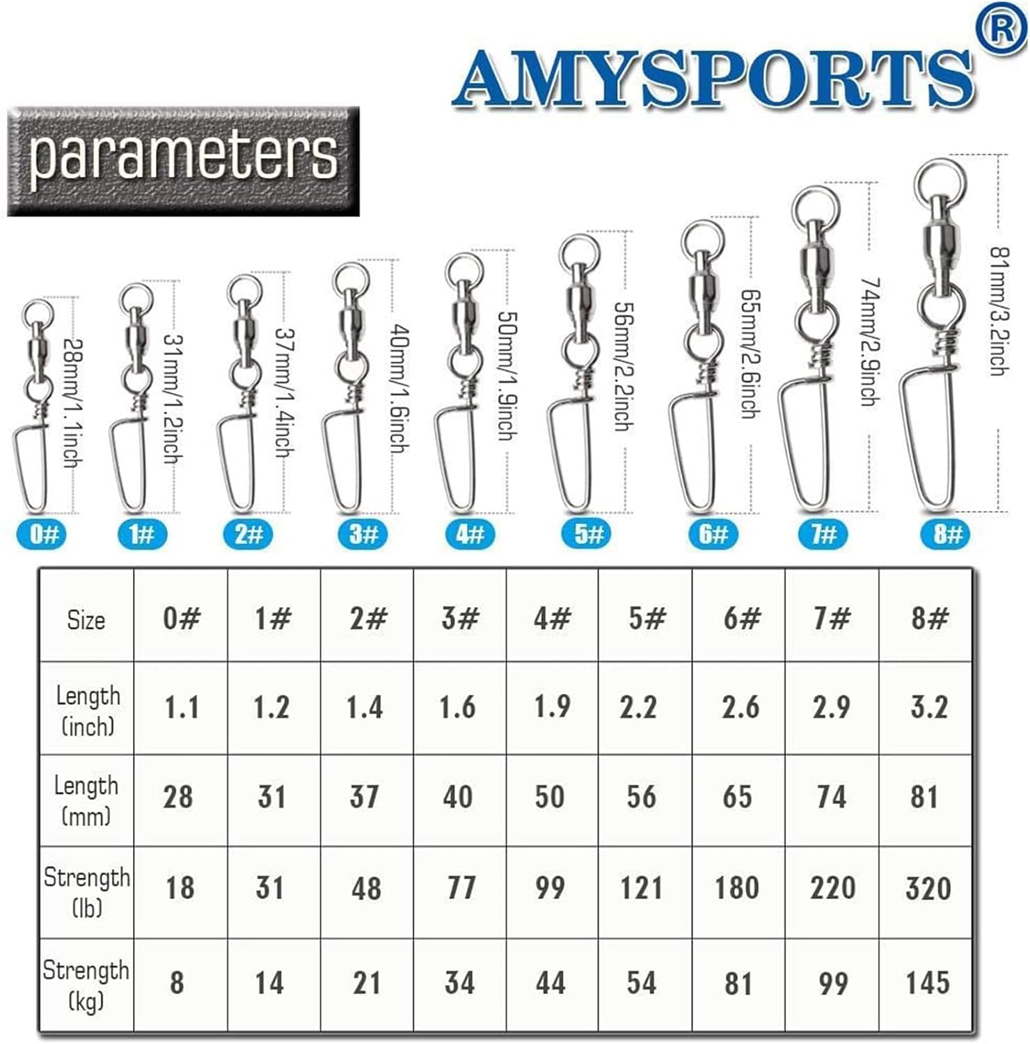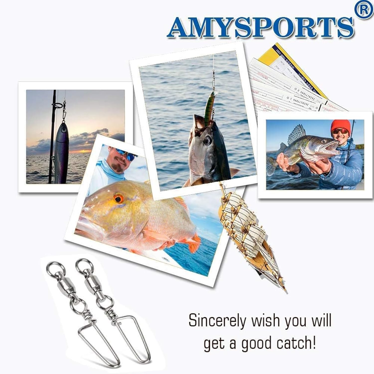 AMYSPORTS High Strength Fishing Snap Swivels – Stainless Steel Ball Bearing Swivels – Saltwater & Freshwater Fishing
