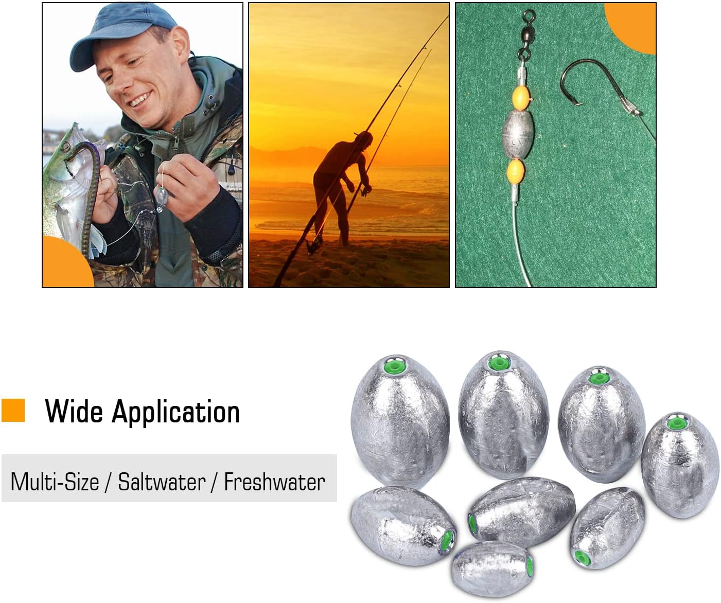 Atibin Removable Egg Lead Fishing Sinkers Saltwater Fishing Oval Sinkers Shot Drop Weight Sinker Set 1/10oz-10oz