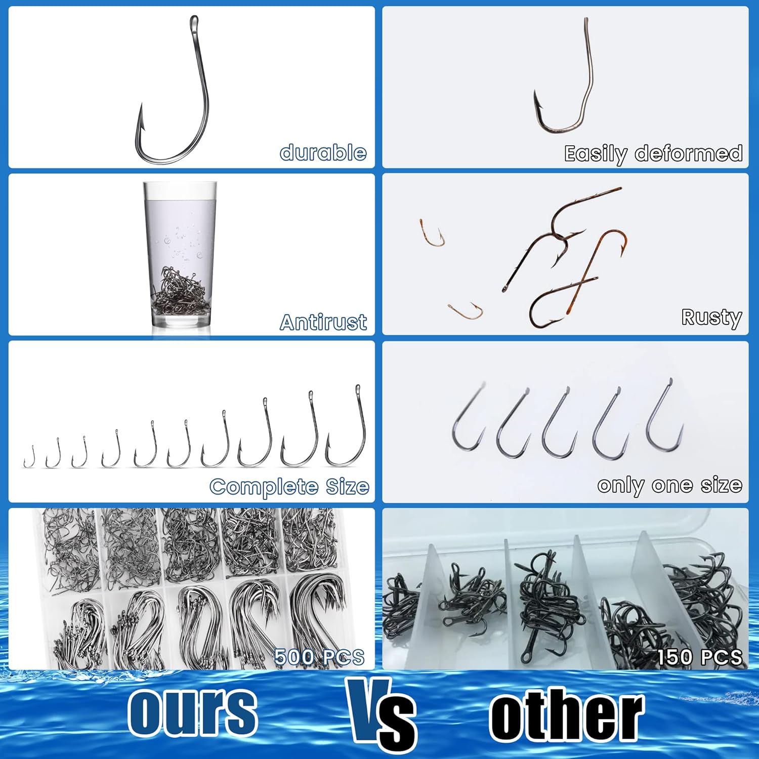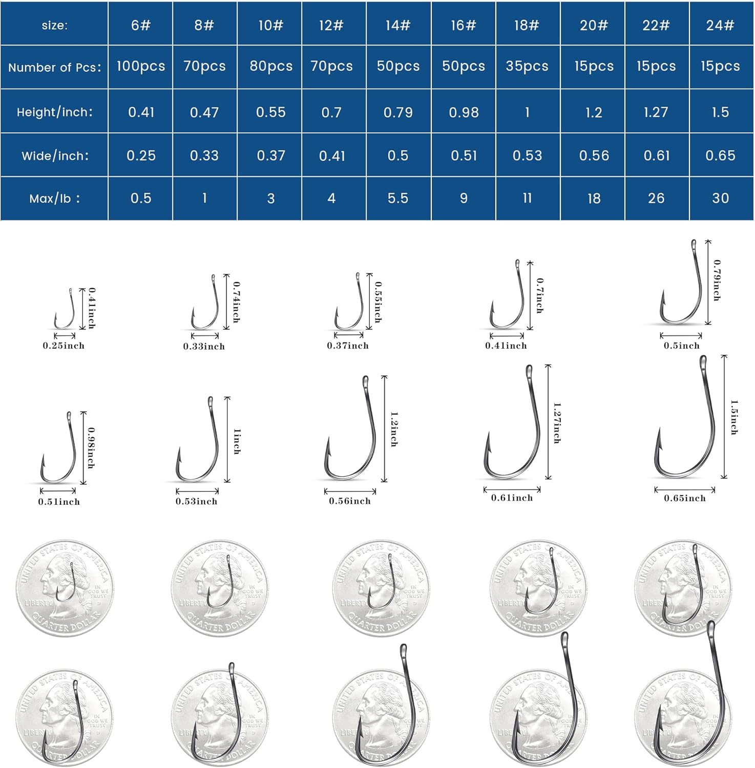 Carbon Steel Fishing Hooks 500Pcs/90Pcs, Circle Hooks Assortment for Saltwater Freshwater Ice Fishing, Salt Water Fish Hooks for Catfish Trout Bass Octopus Multi Size