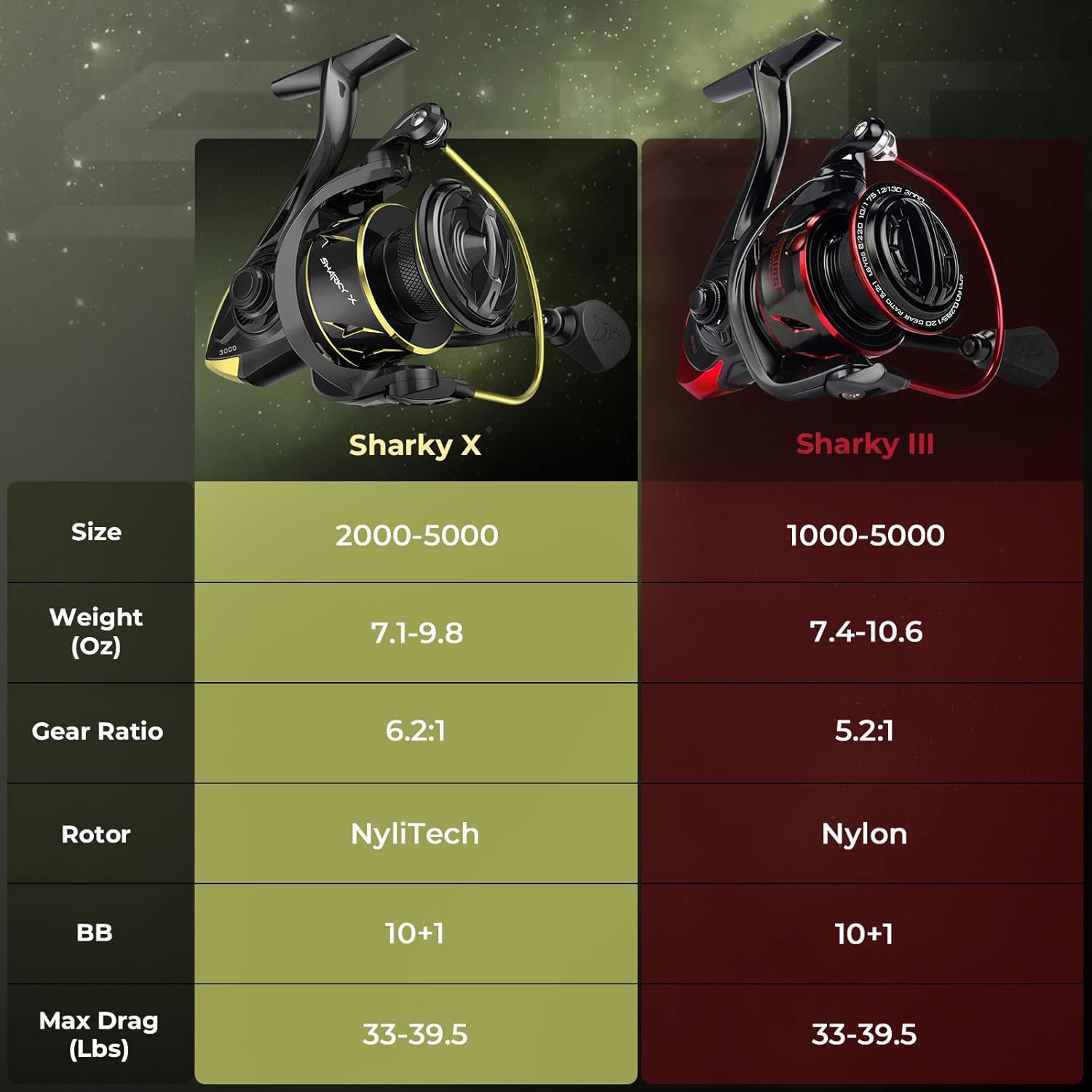 KastKing Sharky Baitfeeder III Spinning Reel 10+1 Shielded Stainless Steel BB – Carbon Fiber Drag for Live Liner Bait Fishing Action