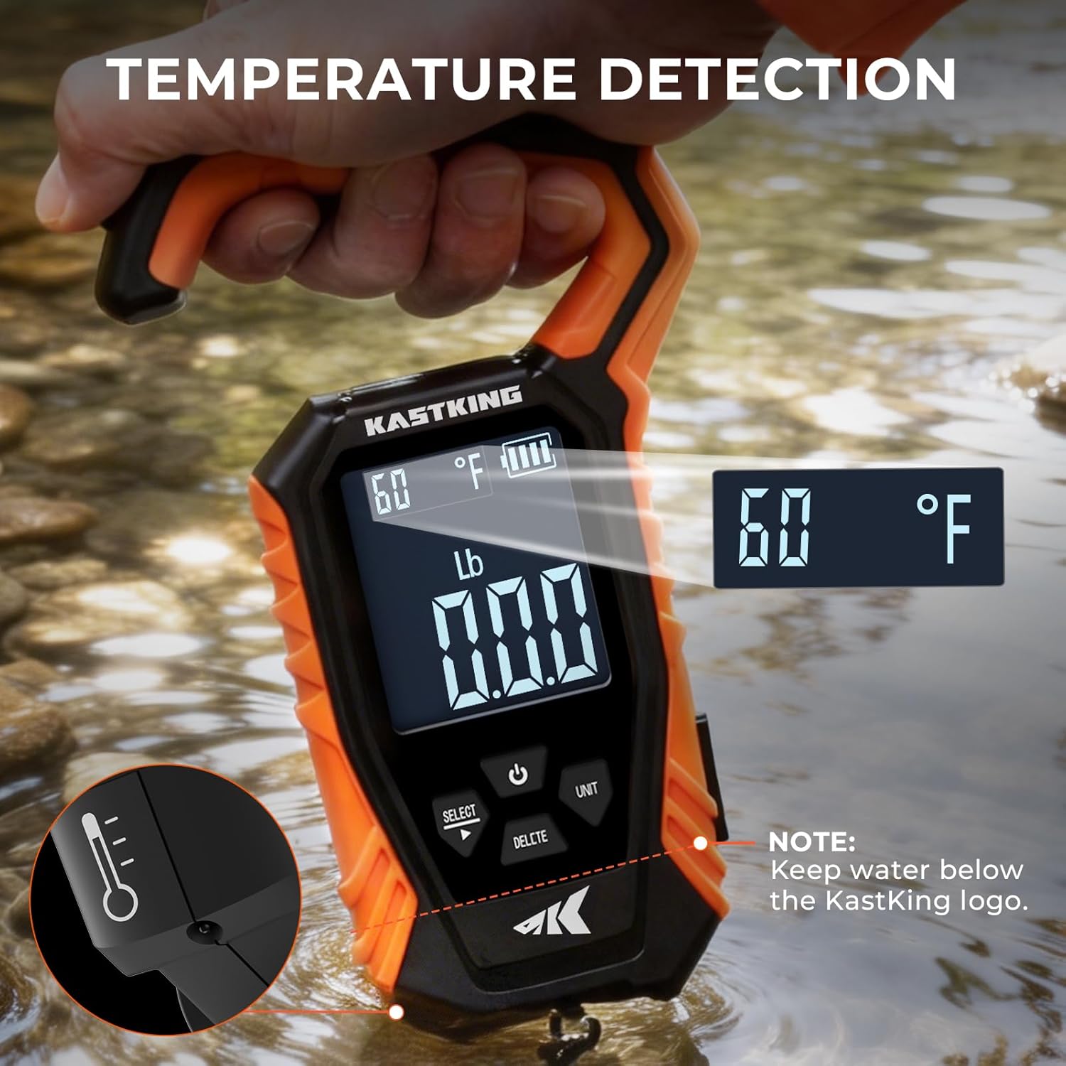 Built to withstand the elements, the KastKing Weighmaster is IPX6 waterproof, ensuring durability and reliability in wet conditions. The integrated lip gripper makes handling your catch safe and easy, minimizing stress on the fish while you weigh it.