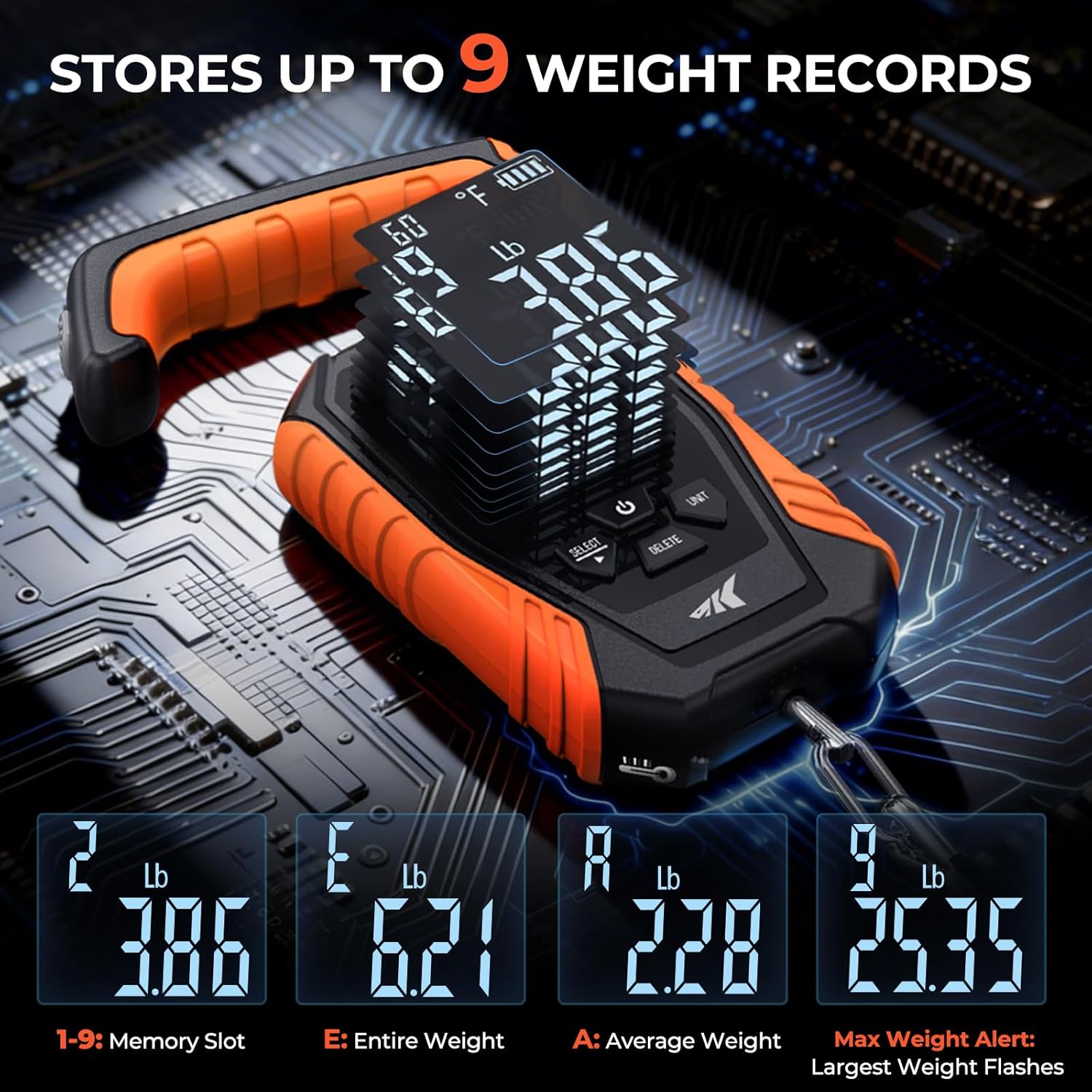 Equipped with a high-precision sensor, the Weighmaster delivers accurate readings every time, so you can trust the results. The scale features a 9 weight memory function, allowing you to keep track of multiple catches without the hassle of writing them down. Additionally, it includes temperature detection, giving you valuable information about the conditions of your fishing environment.