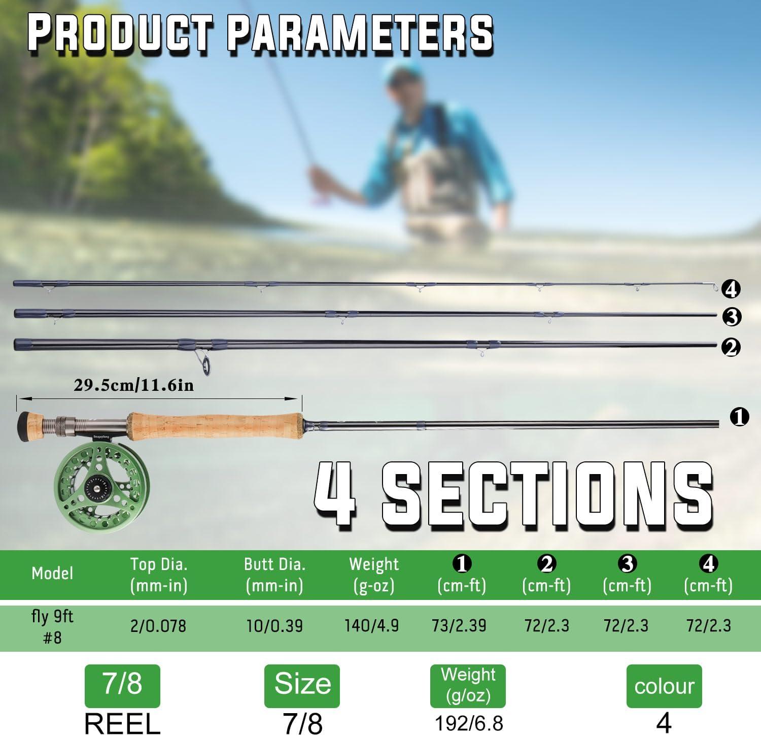 Sougayilang 5/6 Weight 9ft Fly Rod, 4-Piece Graphite Rod, Die Cast Aluminum Reel, Carrying Case, Fly Box & Fishing Flies Combo Starter Kit